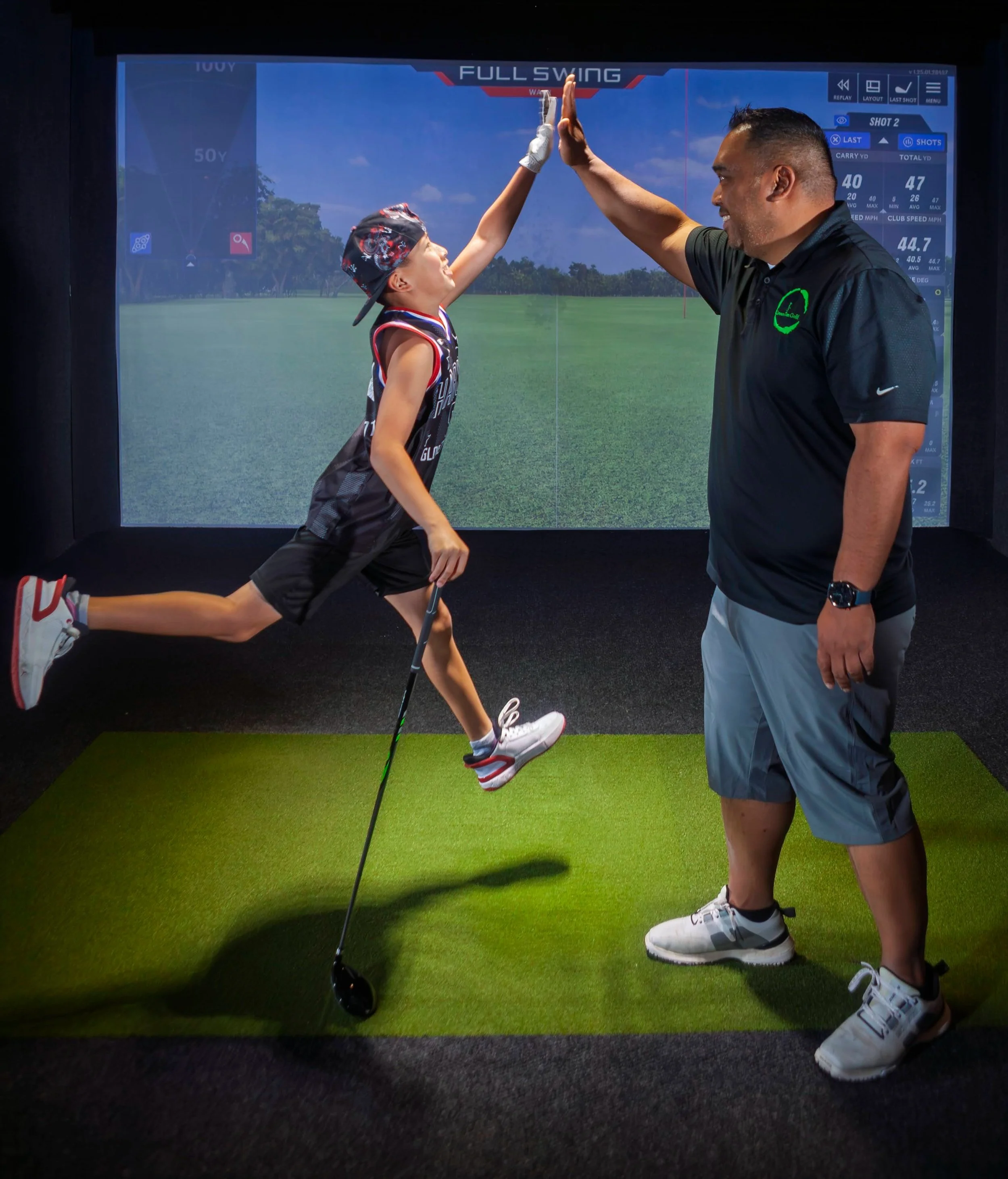 Lessons take place in our indoor simulator bay, allowing for year-round practice and ball-flight feedback.